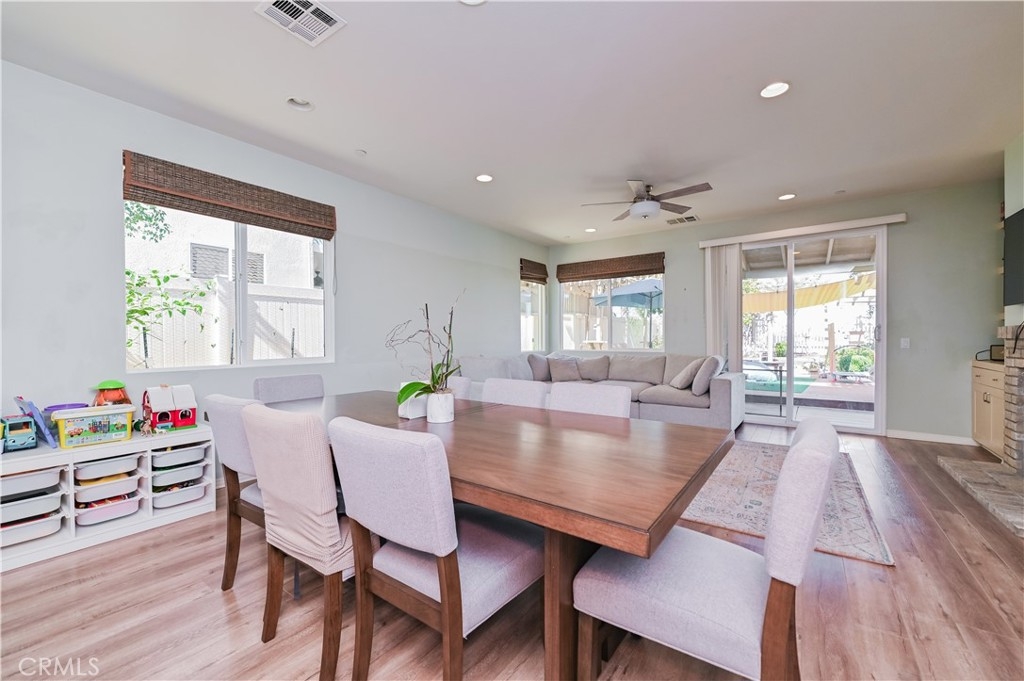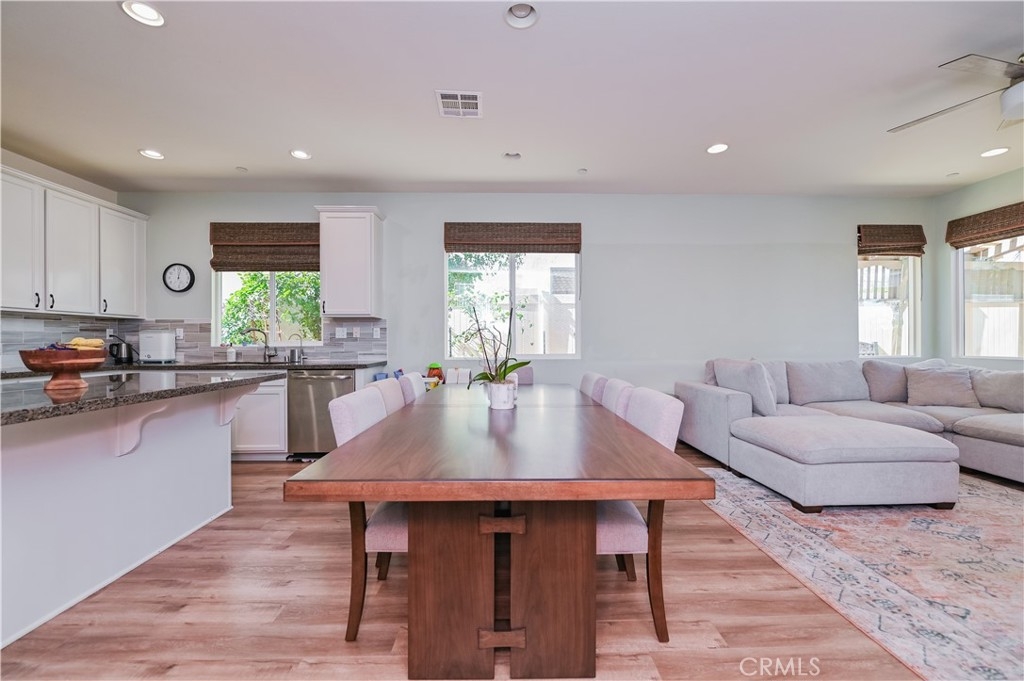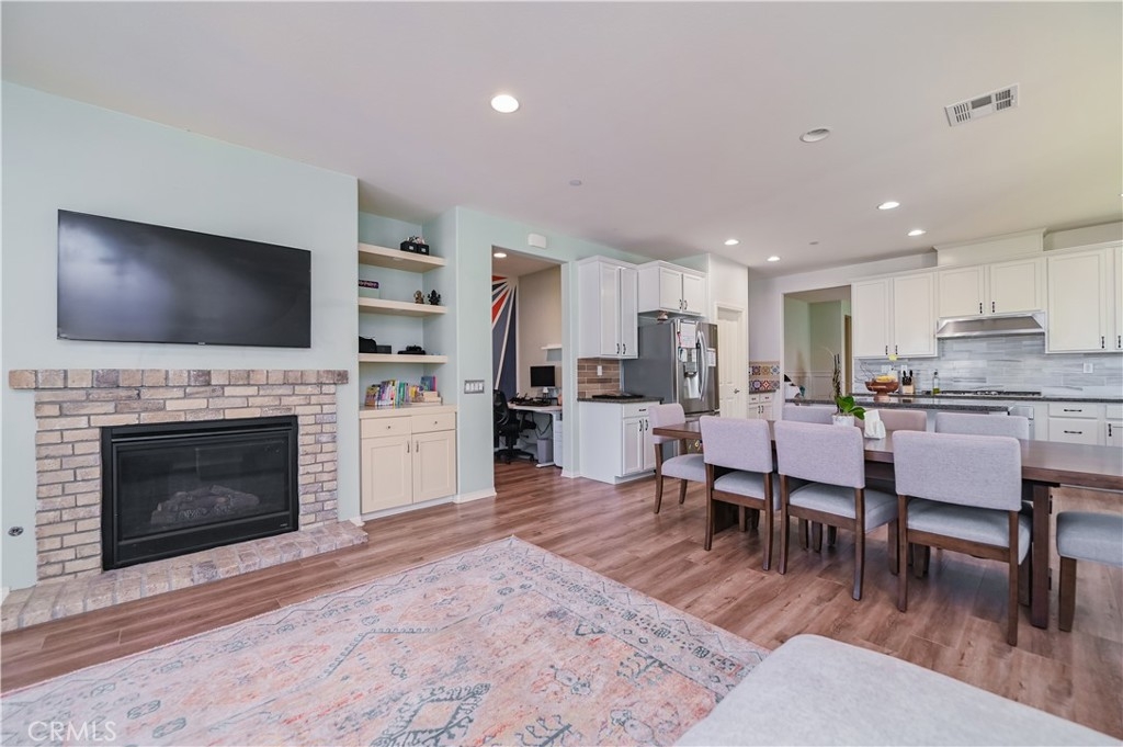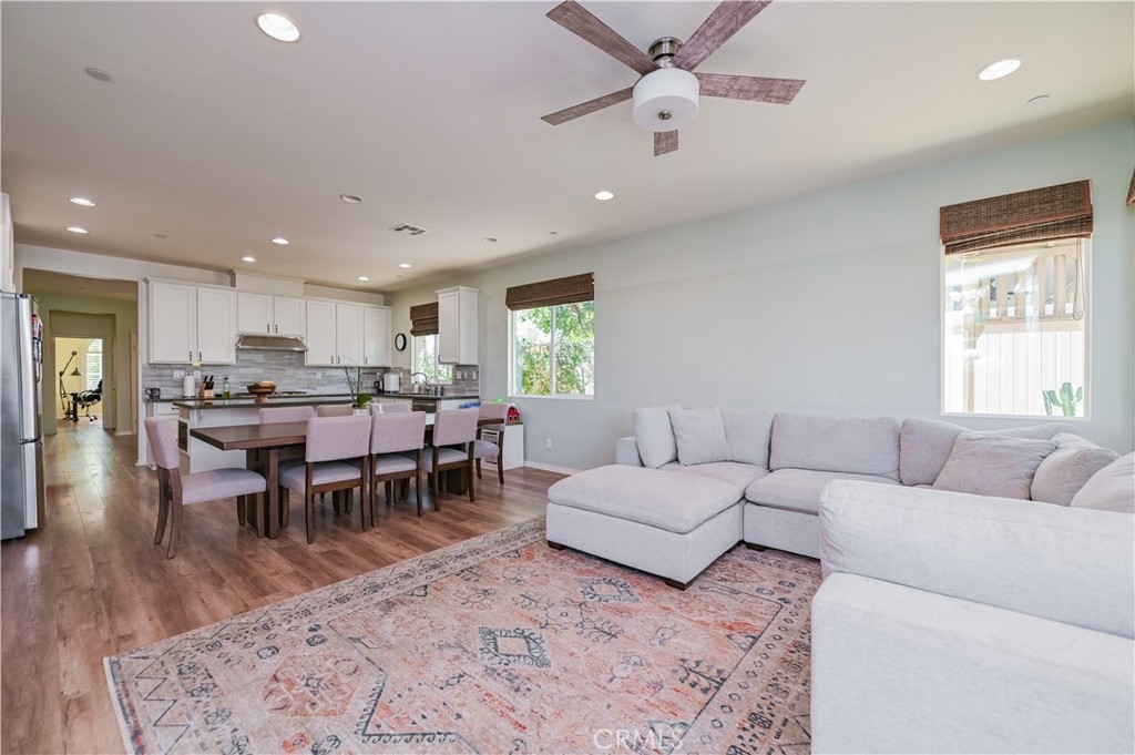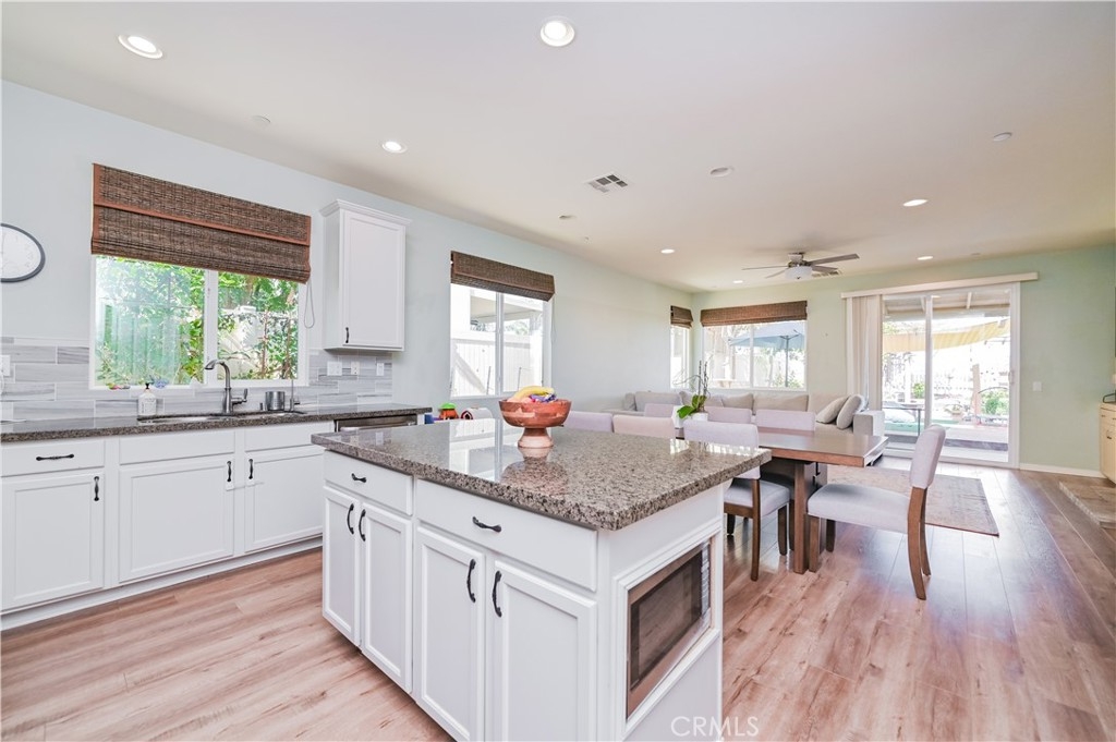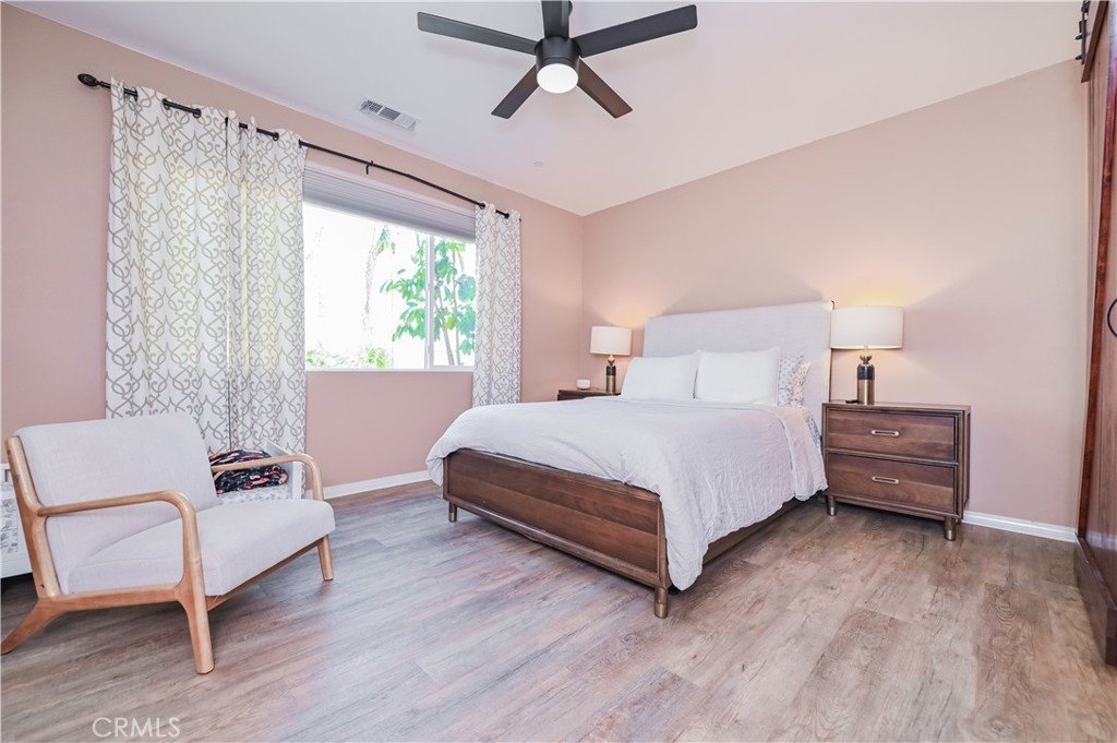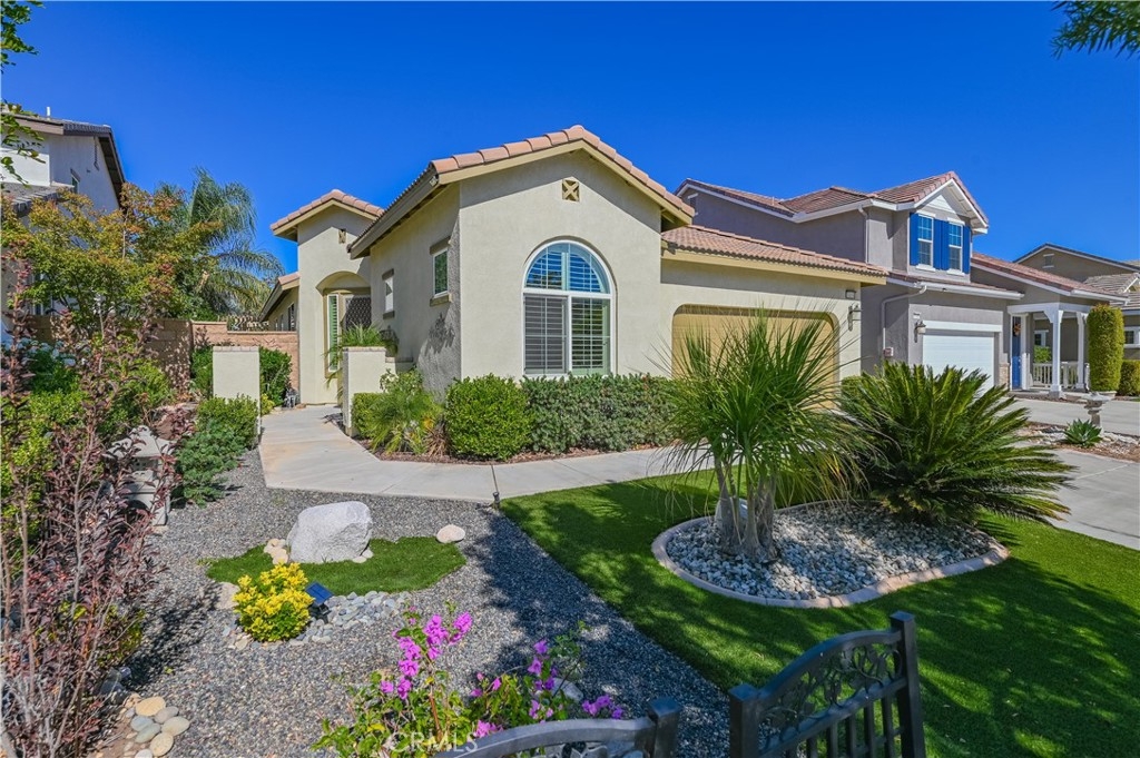 This 2013 Impeccable Cul-De-Sac Home offers an Open Floor-plan, Custom Painted Walls, Floors through the House ,Plantation Shutter, Roman Shade,Water Filter & Custom-Made Garden with automatic sprinkler . The floor-plan strategy support enough daylighting. Through the front yard, semi-enclosed vestibule lead to the home.A formal Living Room features a molding wall design. The Kitchen is open and boasts granite counter tops, a large island, stainless steel appliances, recessed lighting, a wet bar and a LARGE walk-in pantry .A Dining area connect Kitchen and Family room.A large Family-Room with a Stone Fireplace and Sliding Doors to a Private Landscaped Backyard Garden. The spacious Primary Suite with its big Windows dressed with Roman Shades and Beautiful designed garden VIEW. A Wood barn Door lead to Primary Bath with dual Sinks , separate Shower & Tub, a Toilet Room and ample Walk-in Closet. Indoor Laundry-Room with Upper-Cabinets.The 2 Car garage upgraded with 2 Overhead Steel Storage Racks.
