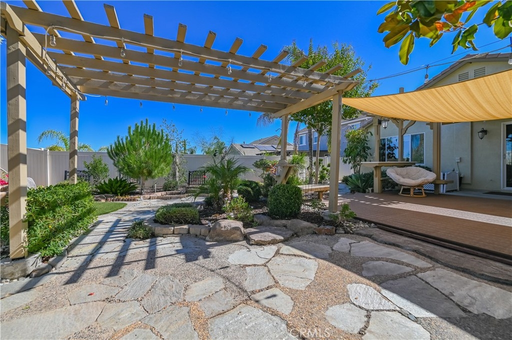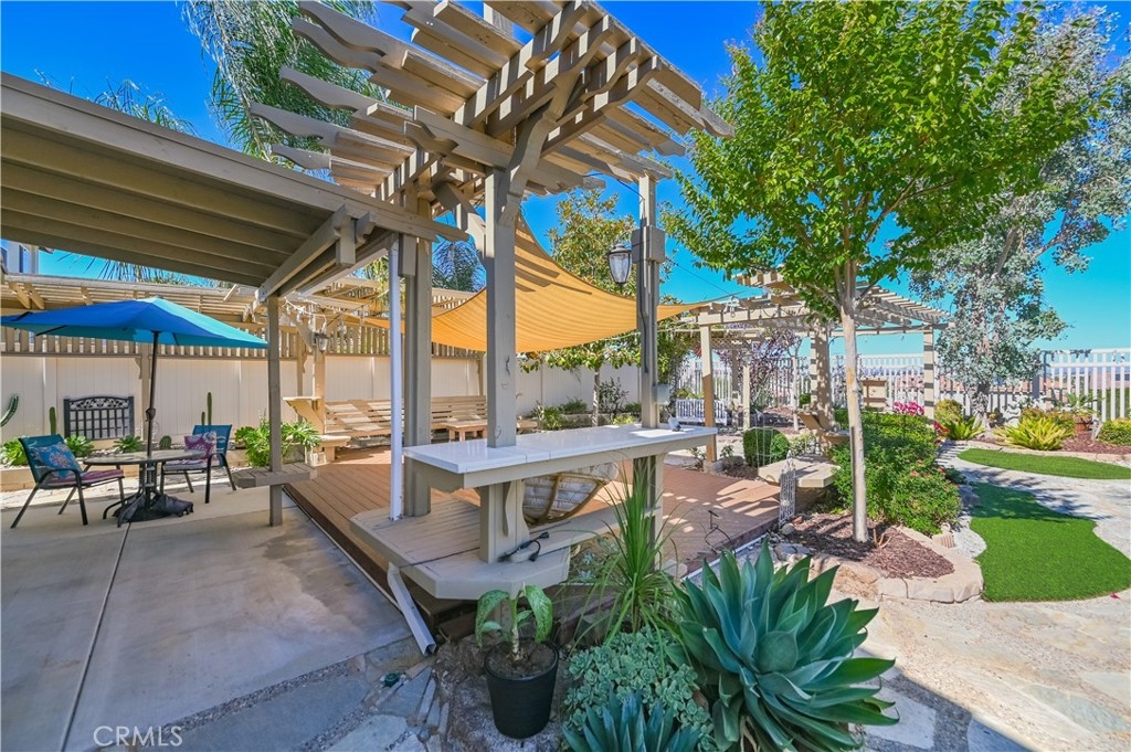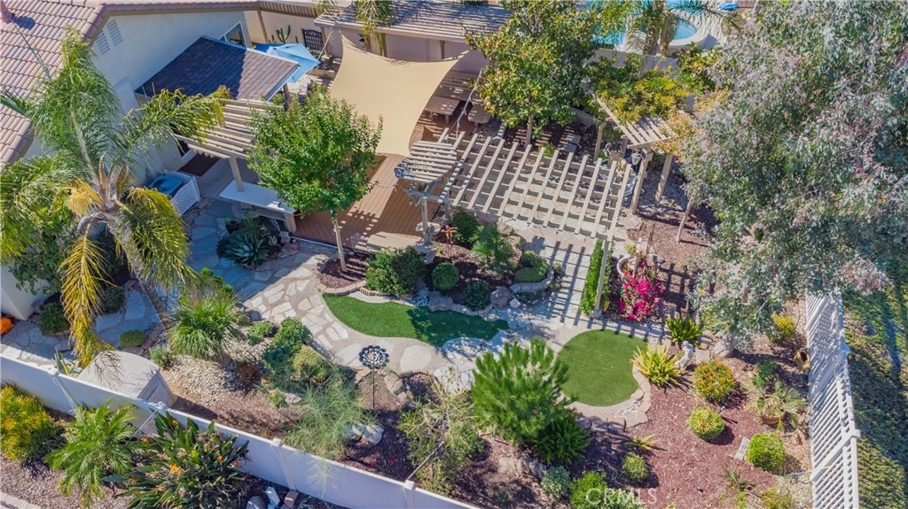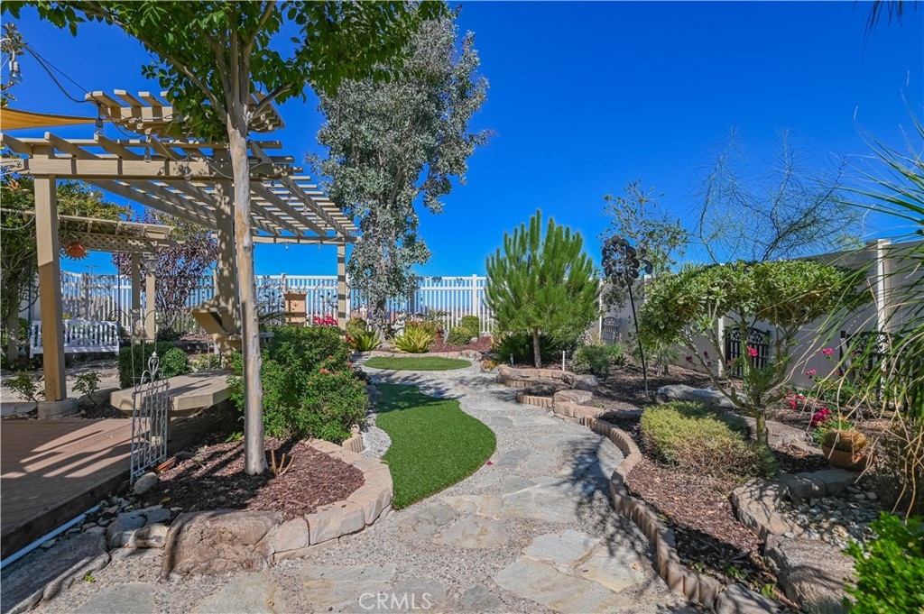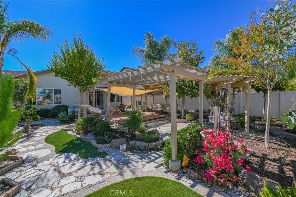 The most unique and relax design is the Backyard.Custom In-grand patio area in the center of garden surrounded by stone footpath and A marvelously varied patchwork of plants.Wander through the garden offers a view of mountains in distance.Rare opportunity for you!