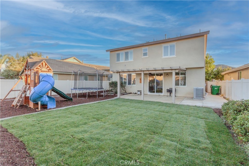 With 4 bedrooms and 3 baths, this home is designed for both comfort and flexibility. Upstairs you'll find a lovely loft/workspace large master bedroom with a wonderfully sized master bathroom featuring dual sinks, full size tub and shower along with a large walk in closet. Every bedroom has ceiling fans along with other great features such as wood paneling and walk in closet. Out back you'll find a wonderfully sized yard that features an alumawood patio cover, grass and space enough to add a swimming pool. On top of all the features mentioned above what also sets this property apart from other listings is the paid-off solar, ensuring energy efficiency and cost savings. With energy rates what they are today, the off-setting of not having a huge electrical bill not only lends to the affordability of this home today but also the long term savings over the years regardless of climbing rates. The 2+ car garage with tankless water heater offers a great size for parking and storage. Built in 2012, it seamlessly combines modern amenities with a timeless aesthetic. Located in the heart of Murrieta, this home is close to local dining, shopping and the 15 and 215 freeways. Don't miss your chance to call this exceptional property your own!