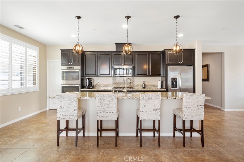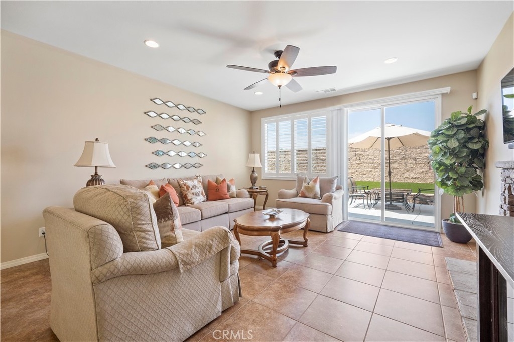 Single-story home corner lot, no neighbors on the side or back, with 3 bedrooms, and 2 baths in the desirable Rancho Bella Vista Community. The Master Bedroom has a dual sink with a Piedrafina quartz counter, separate tub, shower with glass enclosure, and a large walk-in closet. This home features an open kitchen granite countertop, large island, stainless steel appliances, walk-in pantry, cozy fireplace in the living room, carpet, and tile flooring throughout the living area. The formal dining room can be converted to a 4th bedroom. This home features a water softener, solar, reverse osmosis drinking water filtration, plantation shutters, and a 2 car garage with epoxy flooring. Large and low maintenance front and backyard with concrete and artificial grass allow you to enjoy gatherings with friends and family. Also walking distance to Alamos Elementary and Bella Vista Middle school and minutes away from 15 to 215 Freeways. Low Tax and Low HOA in this neighborhood.