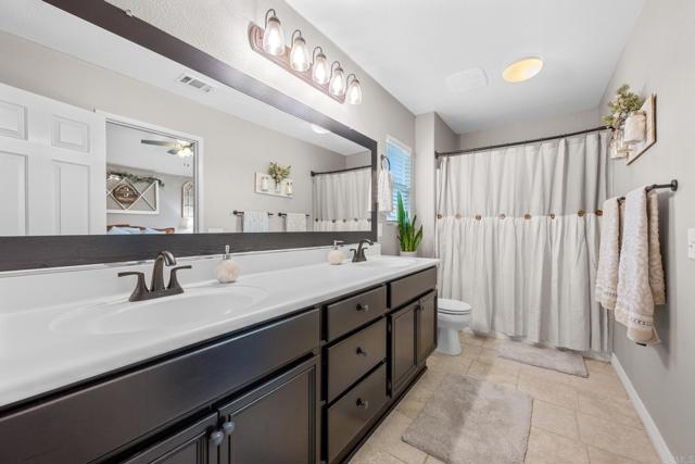 Welcome to your dream home nestled in the highly desirable neighborhood of Rancho Bella Vista! This immaculate 3 bedroom, 2.5 bathroom residence is situated on a serene cul-de-sac, offering the perfect blend of comfort, convenience, and luxury living. Seller didn’t waste any time with all the upgrades! True pride of ownership with this home! Pulling up you will notice the spacious porch perfect to unwind after a long day. Step inside and be greeted by an inviting atmosphere enhanced by an abundance of natural light and tons of modern upgrades throughout. The spacious living area is complemented by a cozy fireplace and beautiful flooring throughout, creating an ideal space for relaxation or entertaining guests. A gorgeous barn door added and new hardware to the half bathroom which is perfectly located downstairs! The heart of the home lies in the newly renovated kitchen, complete with brand new appliances and stylish finishes perfect for hosting! Head upstairs, discover newer carpet, a convenient laundry room, and a versatile loft area, perfect for an office, playroom, or additional living space to suit your lifestyle needs. The master suite is a true retreat, featuring a beautifully appointed ensuite bathroom with an expansive walk-in closet with new shelving. Outside, the low-maintenance backyard oasis awaits, boasting lush turf and a peaceful ambiance for outdoor enjoyment featuring upgrades including shed shelving, new fire pit, beautiful patio area and gorgeous landscaping. Additional features include a spacious two-car garage with ample storage, an exterior storage area, and a newly painted exterior. The solar panels helps to keep the electric bills low for the hot summer months! Conveniently located near freeway access, shopping centers, renowned wineries, and award-winning schools, this home offers the perfect balance of tranquility and accessibility. Don't miss the opportunity to make this exquisite property your forever home! Schedule your showing today and experience the epitome of Southern California living.