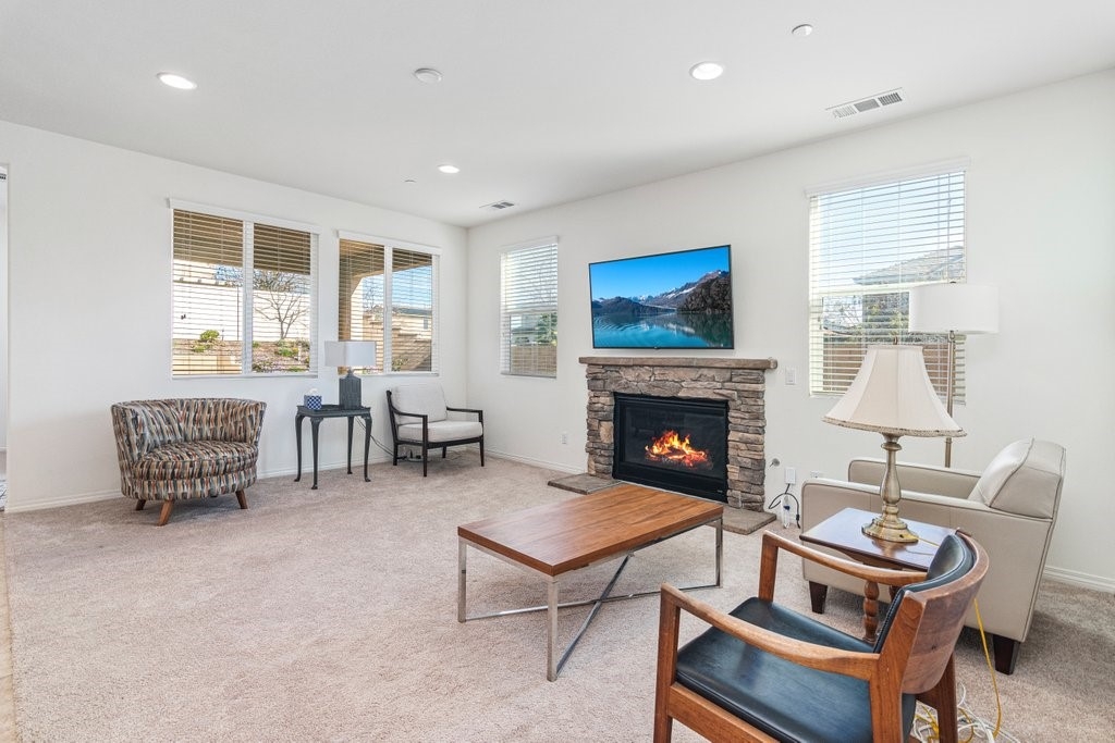 Lennar build corner lot 4 bedroom 3 full bath with a huge loft and flex room and a 3 car garage. Home has plenty of storage. Large closet in entry that goes under the stairs. Front flex room could serve as an office, sitting room, music room, playroom, library or many other options. Family room has a stone cased fireplace. Large TV newer and stays with home. Kitchen boasts pendant lights, granite counters, double ovens, plenty of cabinets and a big walk in pantry. Separate dining area off kitchen has a sliding door to back yard. Full bathroom downstairs and a great size bedroom downstairs with a sliding door to the back yard. Upstairs there is a huge loft. The bedrooms are very good size. The primary bathroom has a big bath tub and lots of counter space. Laundry room upstairs with a sink and linen storage area off laundry. The home is well maintained and looks hardly lived in, original owners. Corner lot with no home kitty corner across the street. Beautiful view of city and sometimes hot air balloons. Murrieta address located in the award winning Temecula Valley Unified School District. Minutes from freeway access, shopping and wine country.