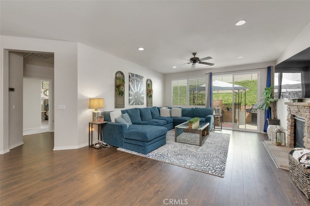 Beautiful single story open floorplan solar home in the desirable Rancho Bella Vista community. Home features many upgrades including large kitchen island with granite countertops, stainless steel appliances, pendant lighting, double oven and large walk-in pantry. The kitchen opens up to the family room and dining room. There is beautiful laminate wood flooring, shutters and upgraded light fixtures. Master bathroom has separate tub and shower, double sinks and vanity area. Home is in the Temecula school district and has low HOA and lower taxes.