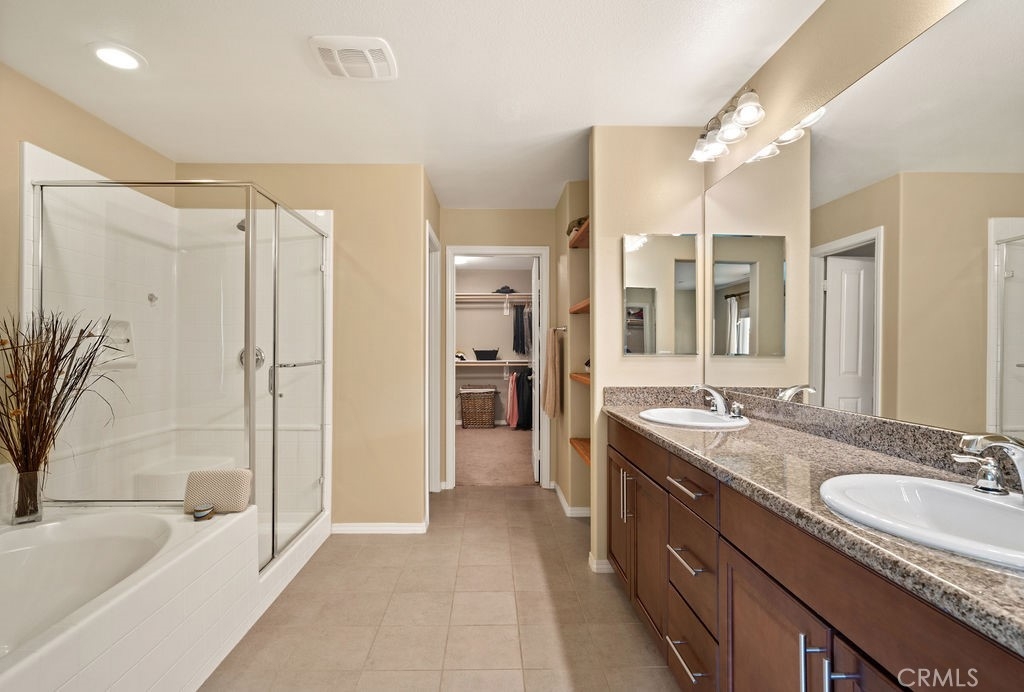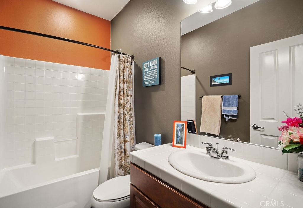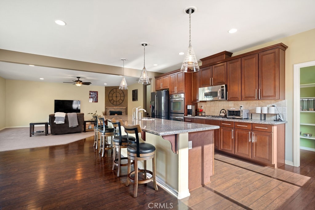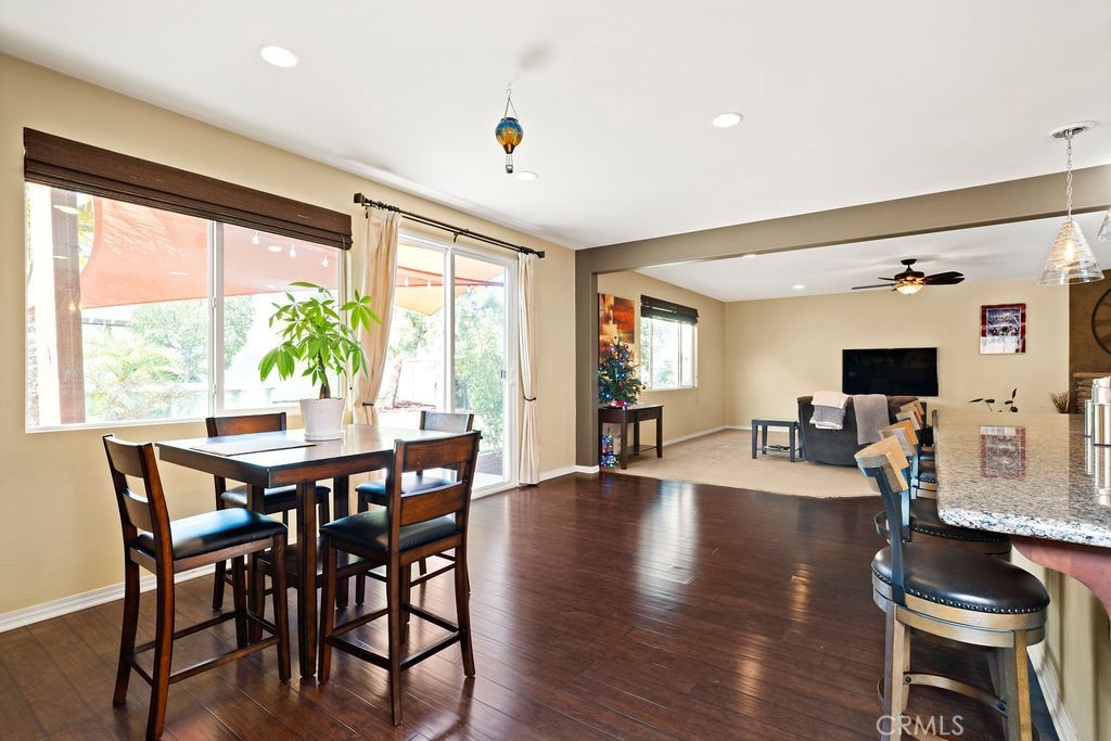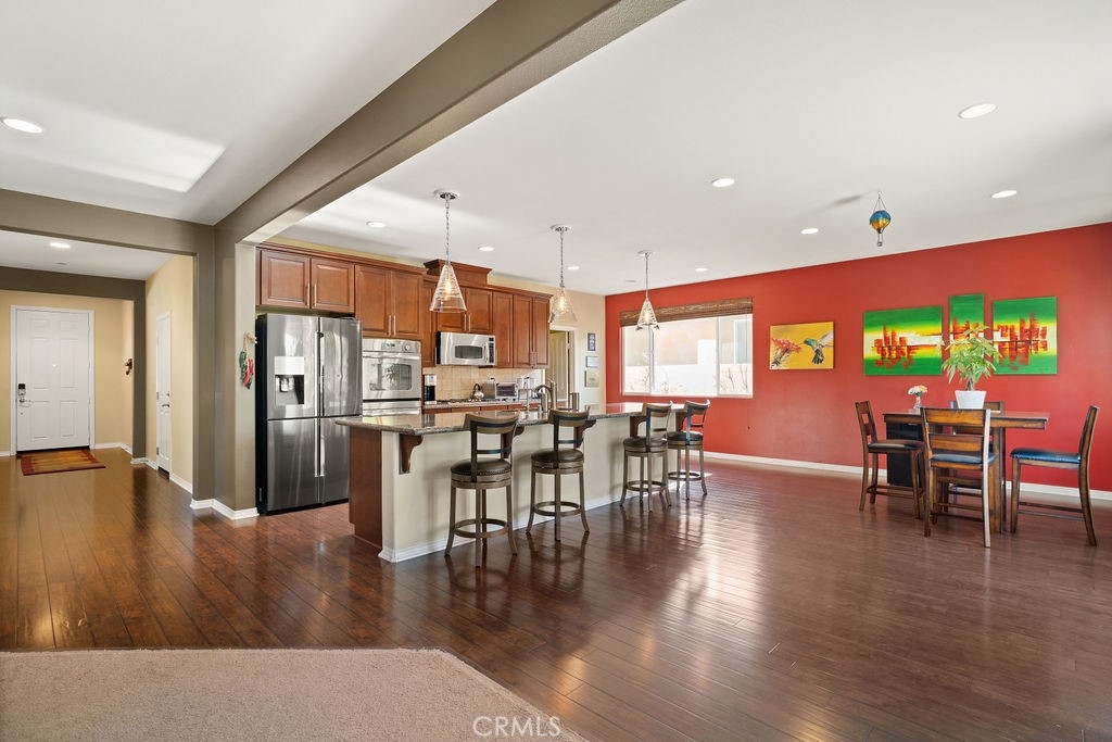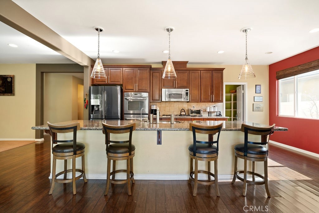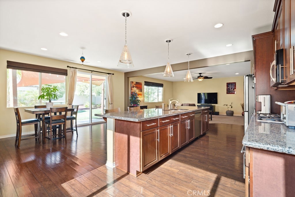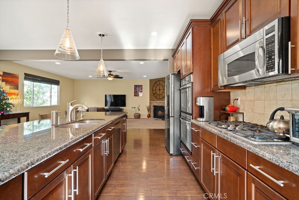 Charming above-ground pool home with beautiful curb appeal in the desirable community of Rancho Bella Vista with PAID OFF SOLAR PANELS! This 5 bedroom home is energy efficient with a newer tankless water heater, water filtration, water softener and reverse osmosis system along with 26 completely paid off solar panels (8 installed in 2013 and 18 installed in 2023 and just recently professionally cleaned in November 2024). Enjoy an open floorplan with a spacious living room and cozy fireplace with ample dining space and kitchen island for additional casual dining. The kitchen offers a giant island, stone backsplash with granite counters and many cabinets for storage along with a walk-in pantry, pendant lighting and a newer dishwasher. Lovely views out to the mature backyard with an above-ground pool, shade-sail patio area, palm trees, and multiple fruit trees including meyer lemon, lime, plum, peach, grapes, avocado and tangerine. Upstairs there's a mini loft which could be perfect for a computer nook, den, movie room, or play area along with 3 additional guest bedrooms, large laundry room with built-in cabinets and shelving and the primary suite. The primary bedroom is massive and the bathroom has dual sinks with granite counters, tile flooring, soaking tub, custom shelving, and an enormous walk-in closet with multiple rods and ample storage space. The garage floor has been epoxied and offers extra space for additional storage along with storage under the staircase as well. There are multiple highly-rated Temecula USD schools within walking distance for convenience and this quiet community has a very low HOA. This is a wonderful opportunity to own a very efficient and move-in ready home to make your own!