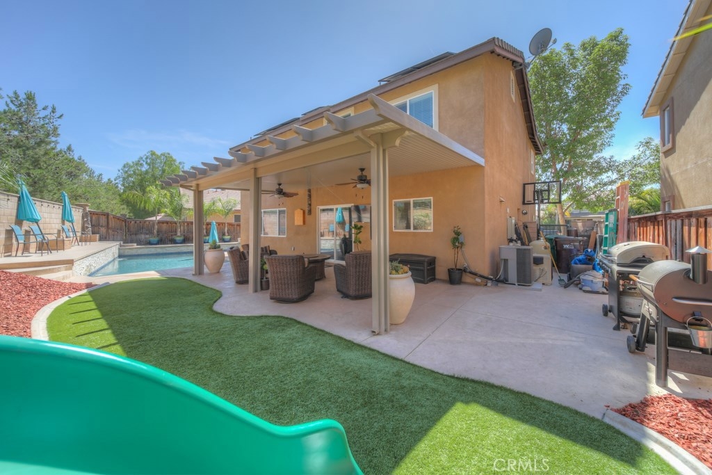 ****BACK ON MARKET AS OF 12/09/2019*** Buyer could not perform - here is your chance!!! Welcome Home to this one of a kind, end of cul-de-sac pool and spa home with Solar in the wonderful community of Rancho Bella Vista! This two story, three bedroom and two bath home with open floor plan features wood pergo floors throughout, all bedrooms upstairs with a loft and laundry room, ceiling fans with lights, recessed lighting, fresh interior paint. Kitchen features granite counters, white cabinets, stainless steel appliances, open to dinning and living room. The backyard is an entertainers delight with stamped concrete, alumi-wood patio cover featuring dual fans and lights, artificial turf grass yard for low water cost, play-set for the kids, and built in pool/spa for everyone to enjoy (pool/equipment is only a year old). No Neighbors behind you as home backs to Alamos Elementary School field. Walking distance to A ward Winning Temecula School district Schools: Alamos Elementary and Bella Vista Middle. Parks and hiking trails within walking distance as well. You will LOVE this home! Solar is owned not leased. Buyer's to assume remainder of seller's purchase contract of solar. $220 a month - no electric bills from Edison.